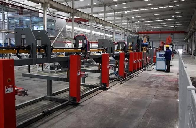 在項(xiàng)目建設(shè)初期,該公司引進(jìn)國(guó)內(nèi)先進(jìn)水平的PC生產(chǎn)流水線、全自動(dòng)智能鋼筋加工線并開(kāi)發(fā)智能混凝土攪拌站。PC流水線由自動(dòng)清掃、噴油、劃線、邊模安裝、混凝土澆筑、趕平、預(yù)養(yǎng)護(hù)窯、抹光、養(yǎng)護(hù)、翻轉(zhuǎn)、沖洗等自動(dòng)化設(shè)備組成,整個(gè)流水線各操作平臺(tái)由中央控室統(tǒng)一調(diào)度、控制,實(shí)現(xiàn)智能化、自動(dòng)化生產(chǎn);鋼筋加工流水線是由全自動(dòng)智能鋼筋桁架焊接機(jī)器人、全自動(dòng)智能鋼筋彎箍機(jī)器人、全自動(dòng)智能鋼筋柔性調(diào)直機(jī)器人、棒材鋼筋加工中心等鋼筋加工設(shè)備組成,可實(shí)現(xiàn)圖形輸入,數(shù)控加工;公司使用的混凝土攪拌站,是由徐工施維英有限公司設(shè)計(jì)、制造的符合公司生產(chǎn)實(shí)際需要的行業(yè)先進(jìn)裝備,該設(shè)備擁有“一站式雙主機(jī)、立體料倉(cāng)”的特點(diǎn),可生產(chǎn)多品種混凝土,尤其具有同時(shí)生產(chǎn)兩種型號(hào)混凝土的功能。