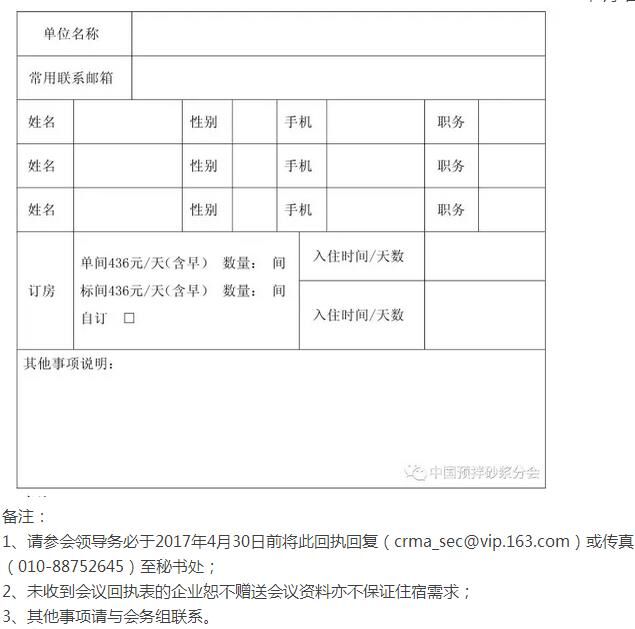 2、請參加研討會(huì)的企業(yè)于2017年4月30日前提交參會(huì)回執(zhí)表,以便妥善安排會(huì)議資料和住宿。