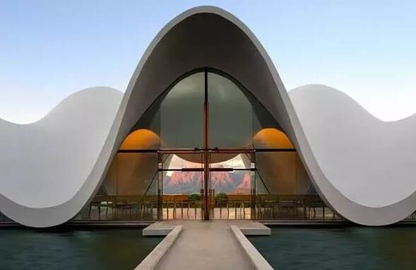 整個(gè)教堂就是一片被“軟化”的混凝土片,飄浮著嵌在四片玻璃上。這片混凝土通過(guò)優(yōu)雅地起伏完成自我支撐,同時(shí)營(yíng)造出一個(gè)完整獨(dú)立的空間。十字架與窗框結(jié)合,完整且恰到好處。四周的景色在起伏的屋頂曲線的“剪切”下呈現(xiàn)出對(duì)稱(chēng)、均衡的完美構(gòu)圖。