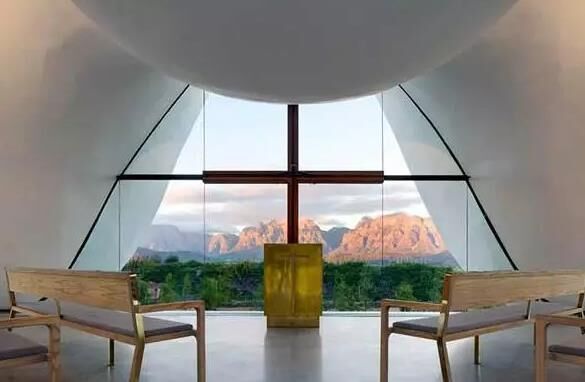 這座優(yōu)美的混凝土小教堂宛如一首小提琴協(xié)奏曲坐落在開(kāi)普敦城外風(fēng)景如畫(huà)的Bosjes農(nóng)場(chǎng)。
