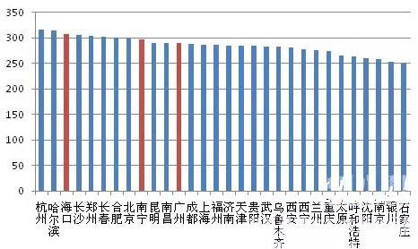 圖1:2016年全國各地C30商混市場均價比較(元/方)