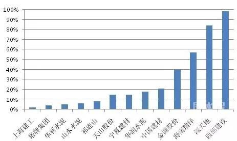 圖3:2016年各企業(yè)混凝土板塊營業(yè)收入占比