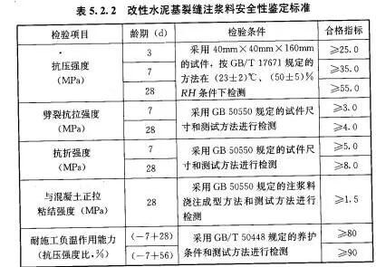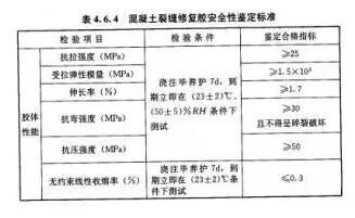 對于裂縫修補材料來說,其材料的安全性能指標(biāo),必須符合GB50728-2011《工程結(jié)構(gòu)加固材料安全性鑒定技術(shù)規(guī)范》的規(guī)定: