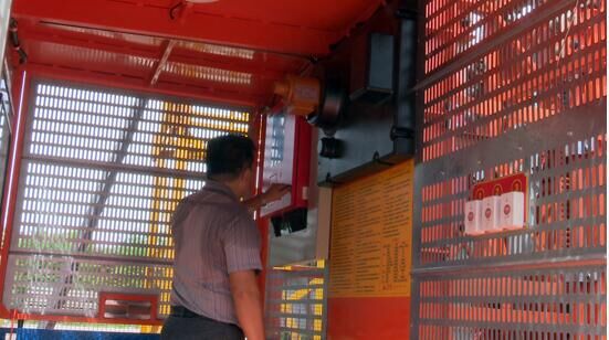 為取得進入歐洲市場的通行證,8月3日由臺灣CE認證機構人員對方圓集團SC200/200施工升降機進行了檢測認證。檢測人員首先對吊籠運載量限制器、高度限位、各大機構、電氣控制系統(tǒng)、安全保護裝置進行了檢測。另外,還進行了額定載荷、超載試驗。
