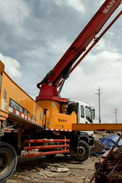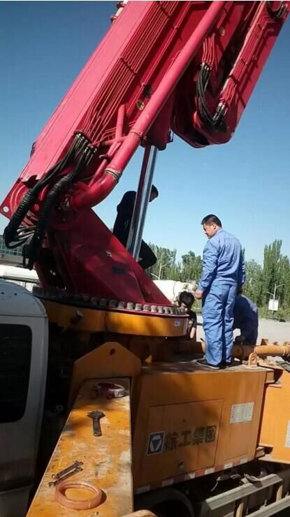 3、泵車就位后,應支起支腿并保持機身的水平和穩(wěn)定。當用布料桿送料時,機身傾斜度不得大于3°。