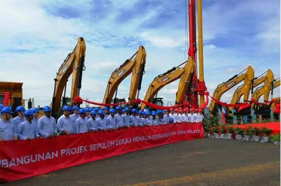 8月9日,在國務委員王勇和馬來西亞首相納吉布的見證下,由中國交建承建的馬來西亞東海岸鐵路開工儀式在彭亨州首府關丹舉行。該項目是目前中國企業(yè)海外在建的最大工程,也是“一帶一路”倡議下最大的單體建設項目。儀式上,三一的混凝土泵車、挖掘機、旋挖鉆機、起重機等大型機械設備集體亮相,備受各方矚目。