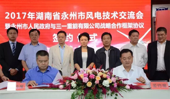 10月11日上午,三一重能與永州市人民政府簽訂了戰(zhàn)略合作框架協(xié)議,雙方將在風電開發(fā)、風電項目投資和裝備制造等方面展開深度合作。簽約儀式前,還召開了永州市風電技術(shù)交流會,交流風電新技術(shù),對接三一重能,共商永州風電產(chǎn)業(yè)發(fā)展大計。