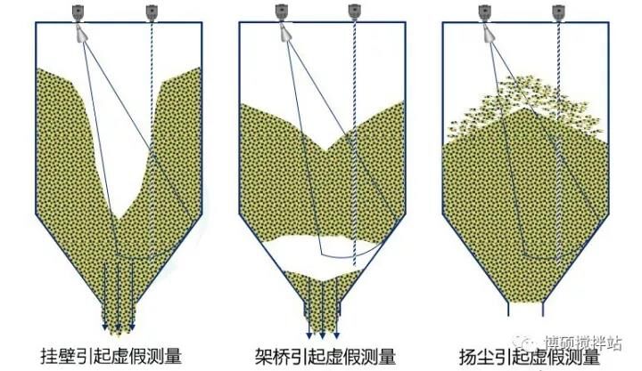 通過輸出位置信息來反應(yīng)料位情況,無法克服倉內(nèi)物料掛壁、架橋,揚(yáng)塵等干擾因素,測(cè)量數(shù)據(jù)不準(zhǔn)確,誤差太大。