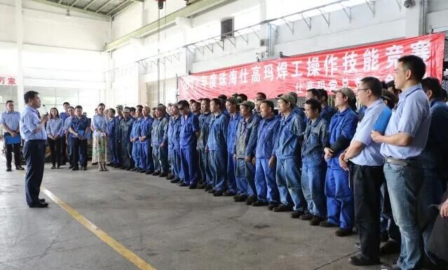 2017年10月26日,珠海仕高瑪公司組織的勞動(dòng)技能競(jìng)賽之仕高瑪、匯高2017年度焊工操作技能競(jìng)賽在仕高瑪冷制作車(chē)間拉開(kāi)序幕,公司總經(jīng)理作賽前動(dòng)員并宣布比賽開(kāi)始。