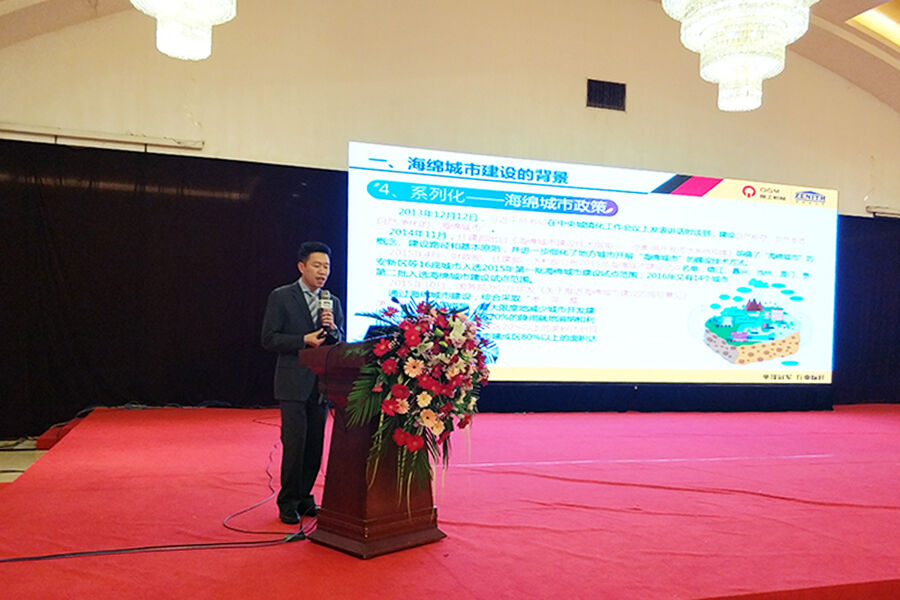傅國華也帶來題為《固體廢棄物制品在海綿城市建設的應用》的專題報告,他從海綿城市建設的背景、建筑垃圾生產(chǎn)透水磚的應用等方面介紹了固體廢棄物制品在海綿城市建設的應用相關問題。