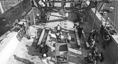 12月19日上午,濟(jì)南長(zhǎng)清大學(xué)城平安南路與劉長(zhǎng)山西路交會(huì)處,隨著最后一方混凝土澆筑到合龍?zhí)帲瑵?jì)南軌交R1高架段全線貫通。