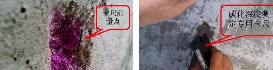 碳化會(huì)增大混凝土表面硬度,所以回彈判定其強(qiáng)度時(shí)需要檢測(cè)碳化深度(一般混凝土碳化深度可用碳化深度測(cè)量?jī)x,碳化深度尺等進(jìn)行測(cè)定?;貜椫禍y(cè)量完畢后,應(yīng)選擇不少于構(gòu)件的30%測(cè)區(qū)數(shù)在有代表性的位置上測(cè)量碳化深度值。)進(jìn)行修正。