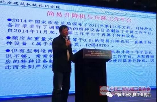 分會(huì)會(huì)長(zhǎng)田廣范作《簡(jiǎn)易升降機(jī)與升降工作平臺(tái)區(qū)別》報(bào)告