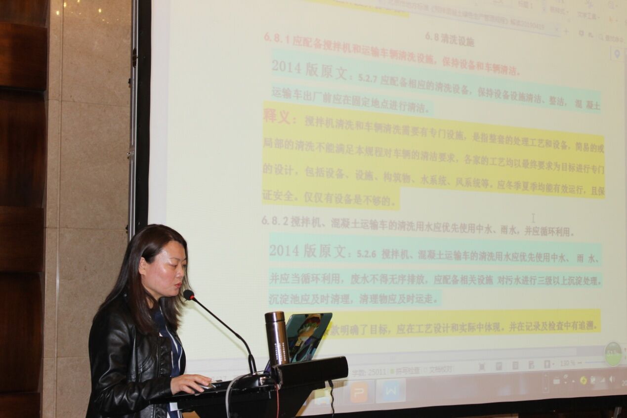 北京市砼協(xié)會秘書長齊文麗女士對《預拌混凝土綠色生產(chǎn)管理規(guī)程》及北京市“治超治限”政策解讀作了詳盡的講解。尤其是切合本次攪拌運輸車研討的主題,重點闡述了攪拌車在政策當中超限問題、攪拌車清潔問題,并對全封閉工作作出解讀。政策規(guī)定是詳盡和嚴謹?shù)模幜P力度也是非常之大,從首都北京的政策解讀中讓與會者感受到了行業(yè)發(fā)展的方向和設(shè)備生產(chǎn)單位制造改善的方向;