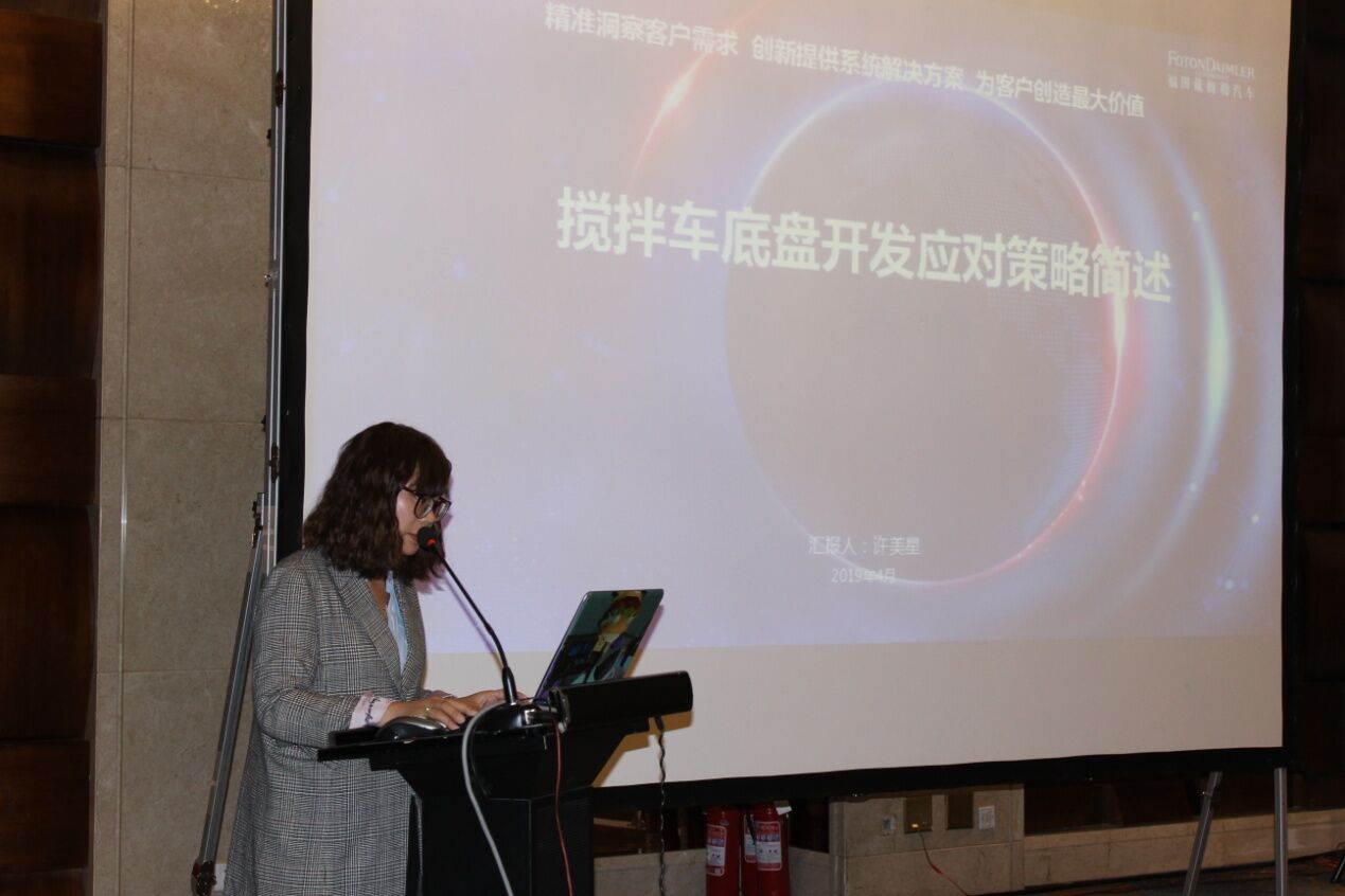 北汽福田汽車股份有限公司技術(shù)部部長許美星女士作了《適應(yīng)攪拌車新法規(guī)之底盤設(shè)計》的主題報告,結(jié)合攪拌車的發(fā)展趨勢介紹了重卡發(fā)展的總體趨勢以及政策法規(guī)制定進程,有很多參考的價值和意義。同時許部長還介紹了認證體系中的主要應(yīng)對項以及BFDA產(chǎn)品開發(fā)應(yīng)對策略,讓與會者對于配套的底盤及政策有了更多了解。