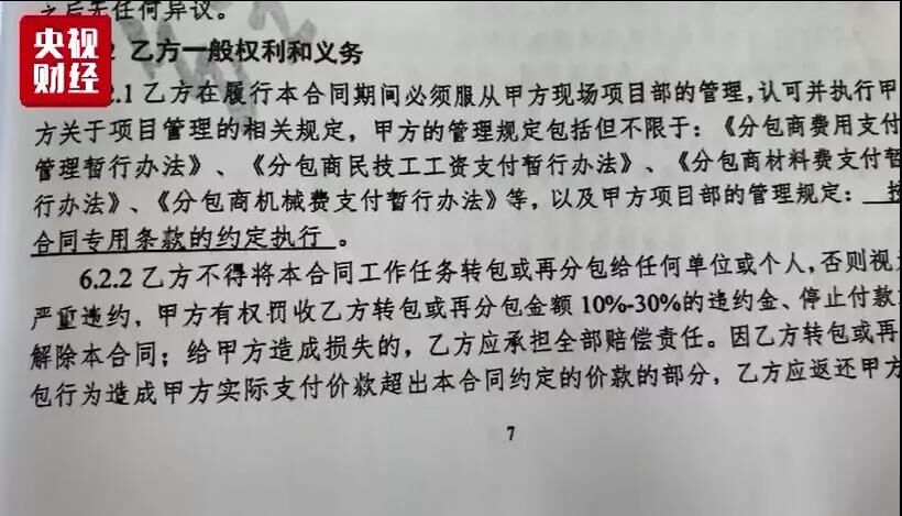 至于永利捷與下游企業(yè)繼續(xù)進行分包的事宜,記者也獲得了一份永利捷公司與下游公司簽訂的合同。而法律專家表示,從永利捷公司往下的一系列轉(zhuǎn)包分包行為均涉嫌違法。