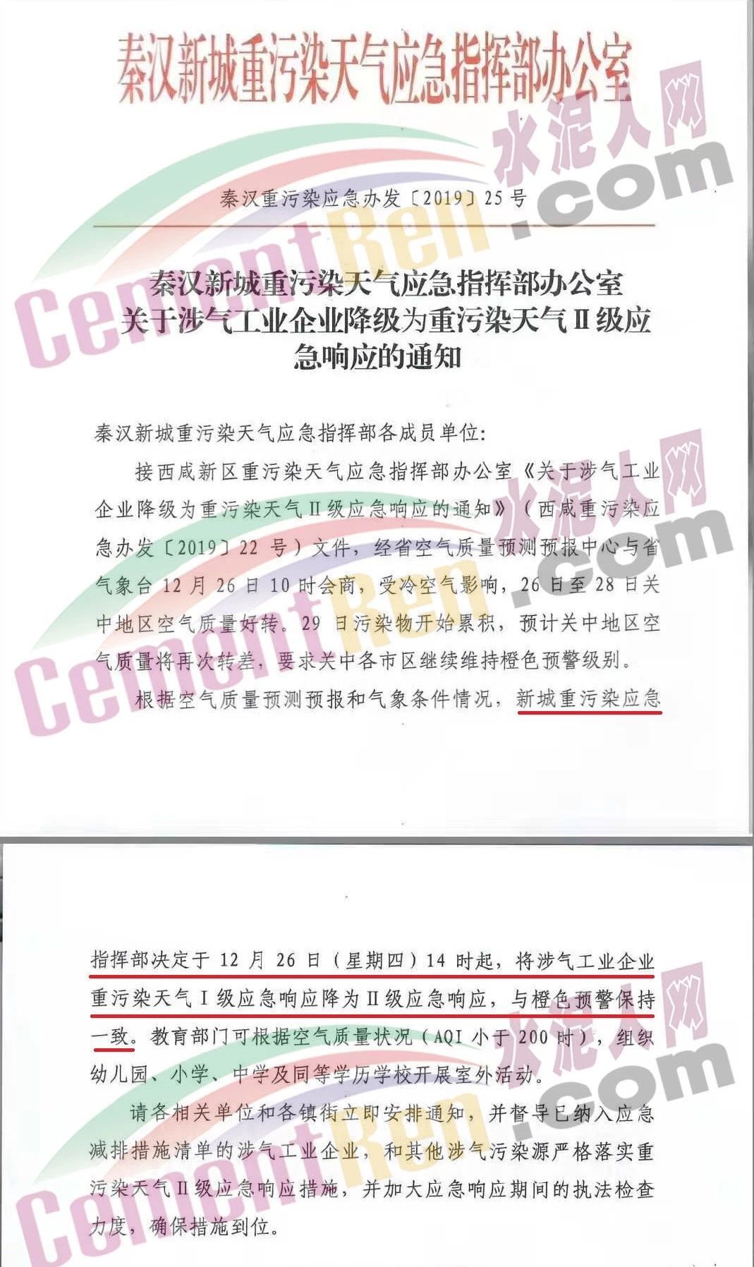 12月26日,陜西省西安市重污染天氣應急指揮部辦公室發(fā)布了《關于涉氣企業(yè)由I級應急響應降至II級應急響應的通知》稱,西安市指揮部辦公室定于12月26日14時起,全西安市納入《西安市重污染天氣應急減排項目清單》的涉氣企業(yè),由I級應急響應降至II級應急響應。通知原文如下: