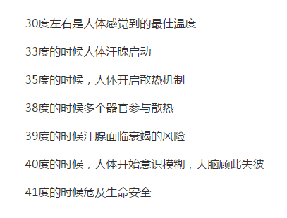 ②全身性高溫反應(yīng):人在高溫環(huán)境中停留時間較長,體溫會漸漸升高,當(dāng)局部體溫高達38℃,便會產(chǎn)生不舒適反應(yīng)。人的深部體溫通常以肛溫為代表。人在休息時主訴可耐受的肛溫38.4~38.6℃,在體力勞動時為38.5~38.8℃。高溫極端不舒適反應(yīng)的肛溫臨界值為39.1~39.4℃。肛溫超過這一限度,汗率和皮膚熱傳導(dǎo)量都不再上升,表明人體對高溫的適應(yīng)能力已達到極限。如果溫度再繼續(xù)升高,即會出現(xiàn)生理危象。全身性高溫的主要癥狀為:頭暈、頭痛、胸悶、心悸、視覺障礙(眼花)、惡心、嘔吐、癲癇樣抽搐等。溫度過高還會引起虛脫、肢體強直、大小便失禁、暈厥、燒傷、昏迷,直至死亡。