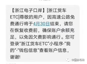 同日,浙江貨車ETC首頁發(fā)布通知,表示高速公路免費(fèi)通行將于4月30日結(jié)束。