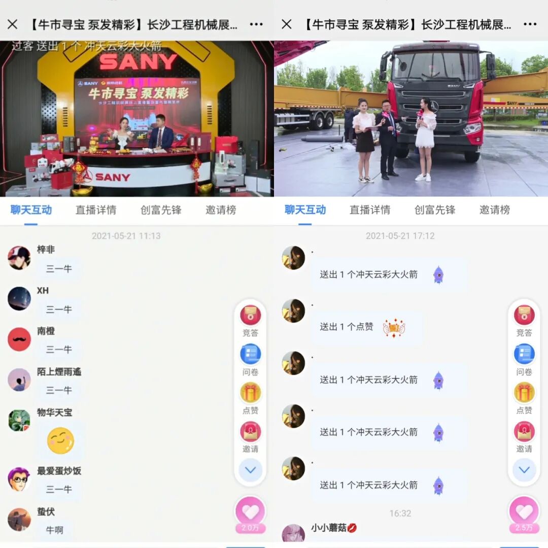 來自三一重工的產(chǎn)品研發(fā)經(jīng)理為觀眾詳細(xì)介紹了泵送、路機(jī)王牌產(chǎn)品,通過尋寶的方式,趣味多多,令觀眾大呼過癮。更有多輪紅包雨、知識搶答等互動環(huán)節(jié)為大家送上泵車模型、遙控?cái)嚢柢嚹P偷群枚Y。