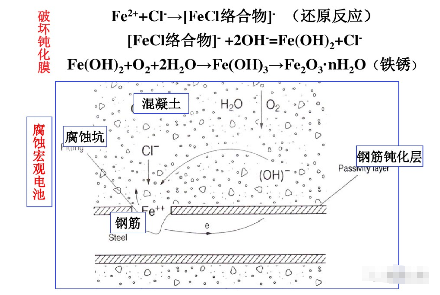 沿海地區(qū)主要的腐蝕因素就是硫酸鹽、氯離子、鎂離子等,對有堿活性骨料,還要考慮加鉀離子和鈉離子。其中,讓大家最關注的就是氯離子對鋼筋的銹蝕作用。