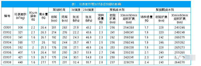 針對上述試驗(yàn)結(jié)果,比表面積宜控制在340m2/kg~380m2/kg范圍內(nèi)。
