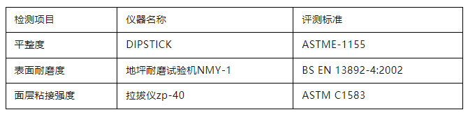 參評項目包括混凝土面層地坪、水泥砂漿面層地坪、整體樹脂地坪系統(tǒng)三大類(下分13種細(xì)分地坪)。“WOCA 地坪獎-亞洲賽區(qū)”(WOCA AWARDS)執(zhí)行國際先進(jìn)的檢測檢驗標(biāo)準(zhǔn),對候選項目進(jìn)行現(xiàn)場性能檢測,依據(jù)三個維度——平整度(FF/FL Testing)、表面耐磨度(BCA Abrasion Testing)、面層粘接強(qiáng)度(Pull-off Adhesion Testing)的測評數(shù)值加權(quán)系數(shù)后得出最終分?jǐn)?shù)進(jìn)行評選。