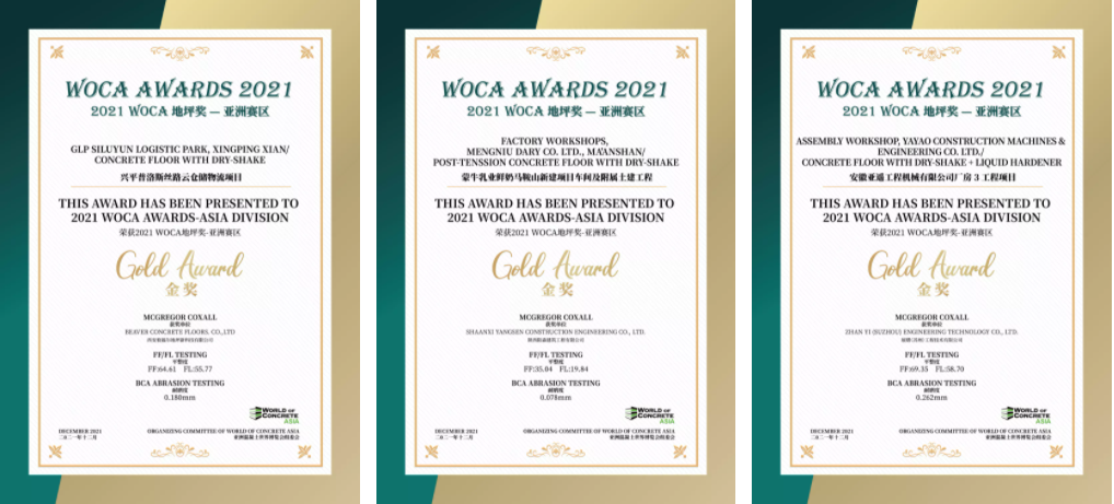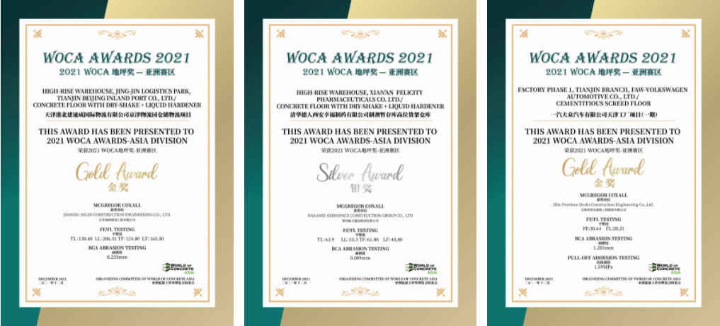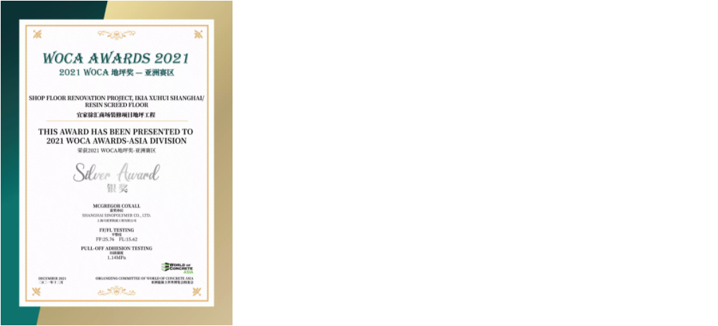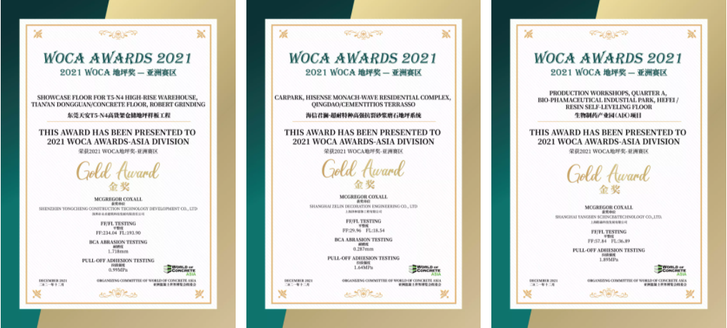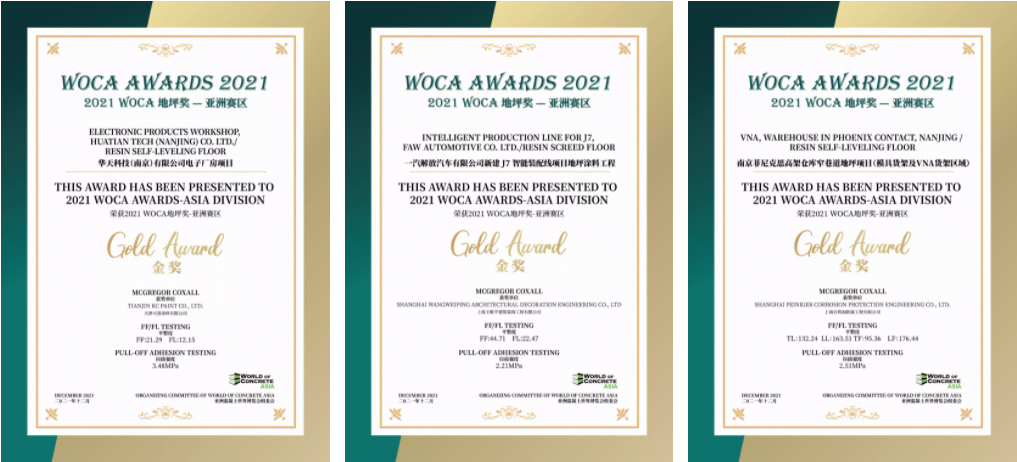經(jīng)過對多個項目進(jìn)行地坪檢測,三大類中13個優(yōu)秀項目獲得了2021 WOCA 地坪獎(WOCA AWARDS)-亞洲賽區(qū)的榮譽(yù)。