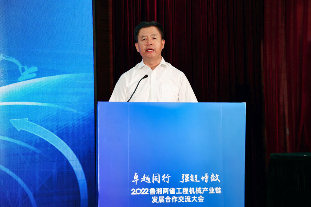 山東省工業(yè)和信息化廳副廳長(zhǎng)靖士寬表示:“山東是裝備制造業(yè)大省,產(chǎn)品種類豐富,農(nóng)業(yè)機(jī)械、機(jī)械基礎(chǔ)件、鑄造、工程機(jī)械、內(nèi)燃機(jī)、醫(yī)療設(shè)備、汽車行業(yè)居全國(guó)前列。從產(chǎn)業(yè)規(guī)模、競(jìng)爭(zhēng)力、影響力等方面來看,湖南省、山東省都是工程機(jī)械強(qiáng)省,都承擔(dān)著國(guó)家工程機(jī)械產(chǎn)業(yè)鏈供應(yīng)鏈安全的重任,‘優(yōu)勢(shì)互補(bǔ)、協(xié)同創(chuàng)新、合作共贏’將會(huì)成為我們兩省下一步合作的主旋律。這次共同舉辦2022魯湘兩省工程機(jī)械產(chǎn)業(yè)鏈發(fā)展合作交流大會(huì),是推動(dòng)湖南、山東兩省工程機(jī)械產(chǎn)業(yè)發(fā)展,促進(jìn)兩省產(chǎn)業(yè)鏈企業(yè)合作,打通兩省產(chǎn)業(yè)鏈協(xié)作創(chuàng)新,引領(lǐng)全國(guó)工程機(jī)械產(chǎn)業(yè)發(fā)展的重要實(shí)踐。”