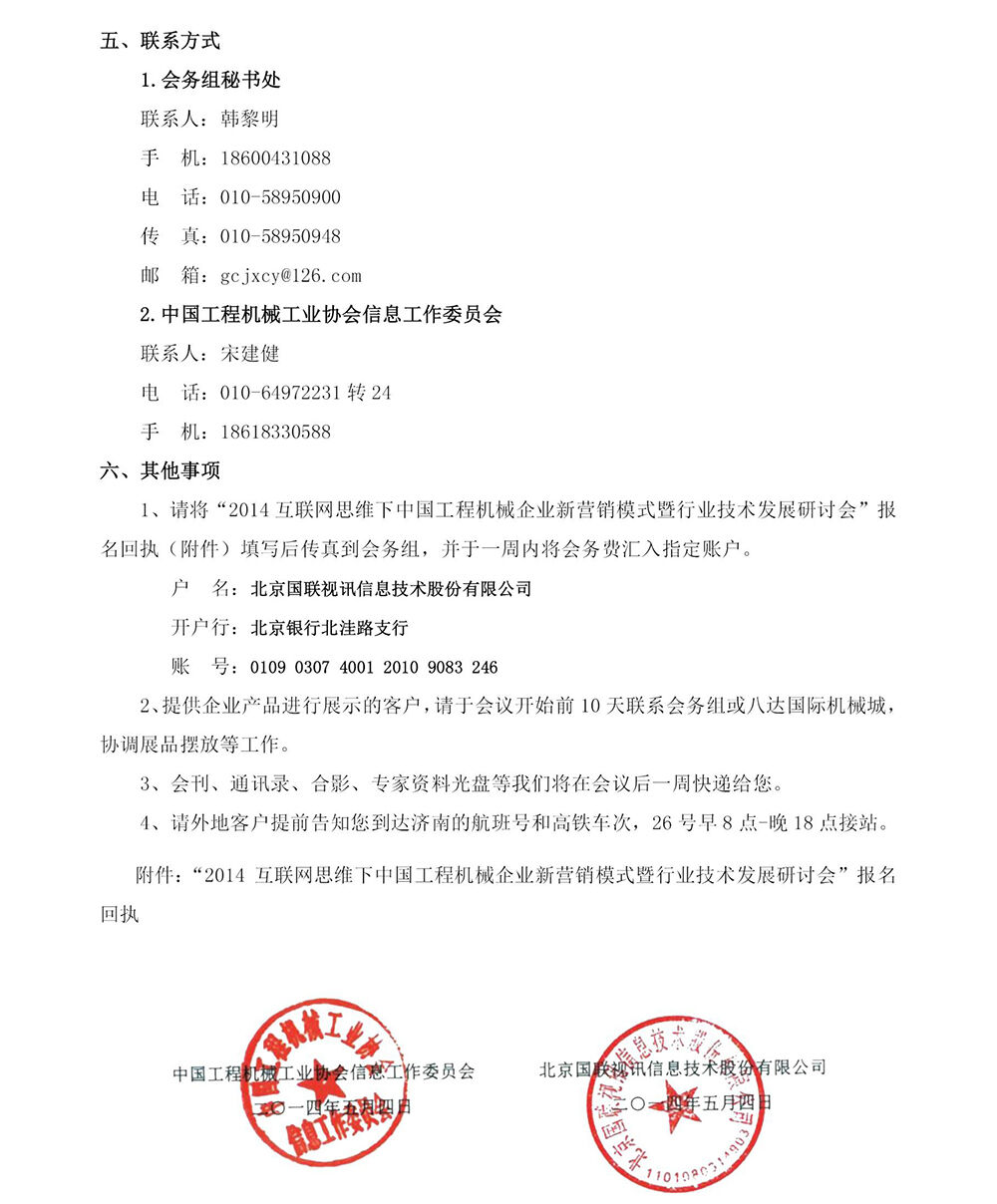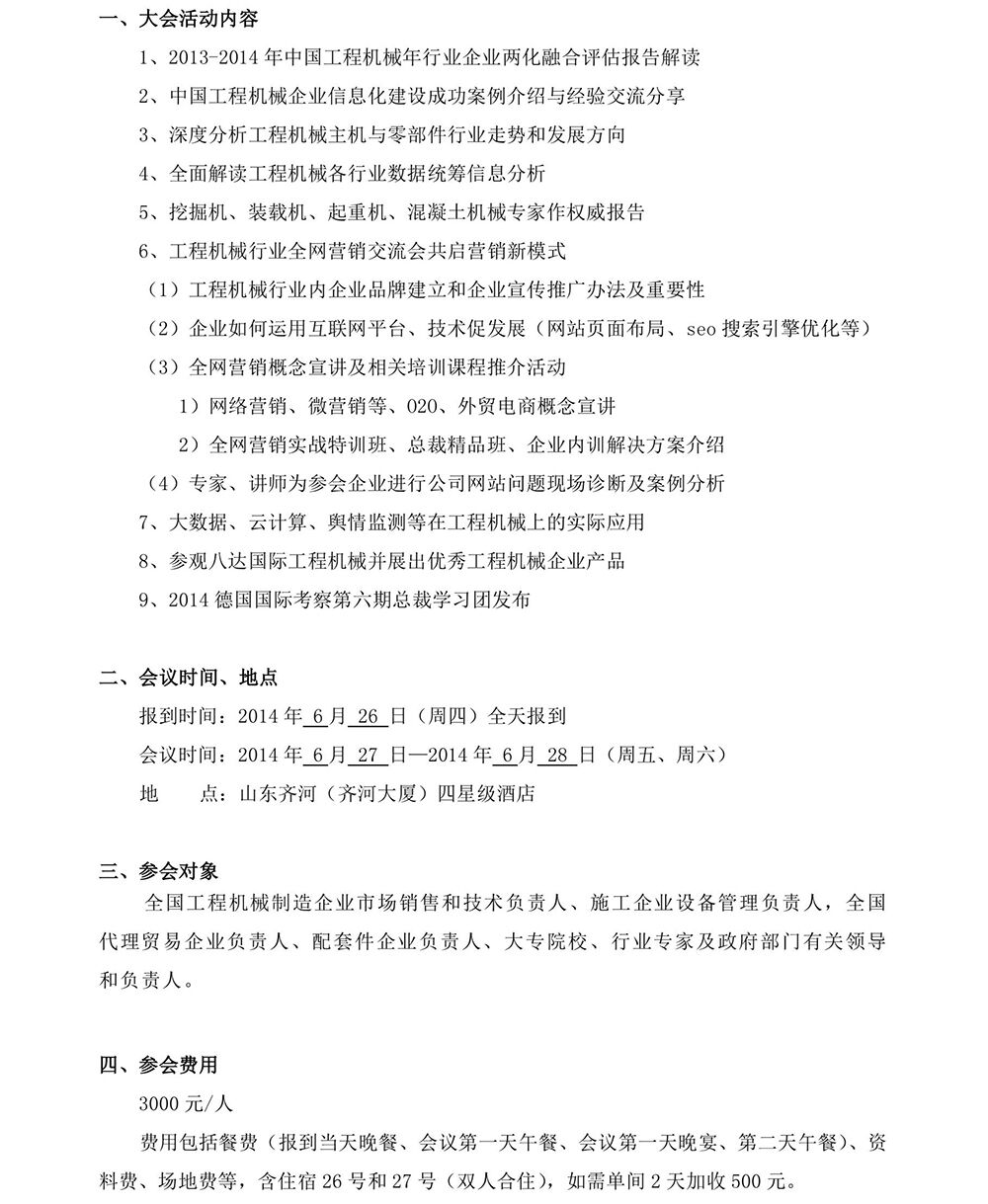 2014互聯網思維下中國工程機械企業(yè)新營銷模式暨行業(yè)技術發(fā)展研討會報名回執(zhí)
