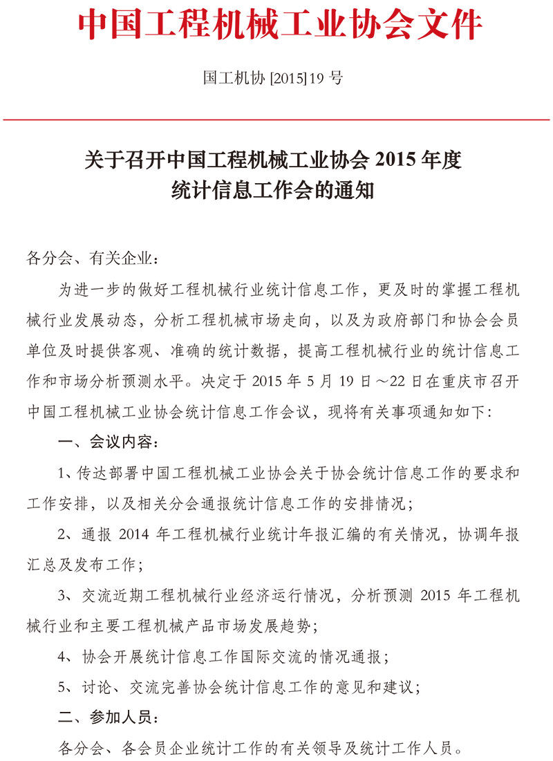 關(guān)于召開中國工程機械工業(yè)協(xié)會2015年度統(tǒng)計信息工作會的通知
