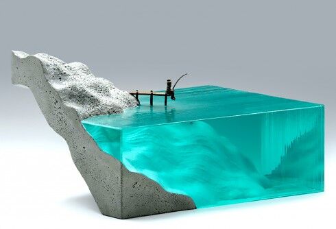 該藝術(shù)品的獨(dú)特創(chuàng)意也引起了眾人的好奇,在采訪中,通過(guò)Ben Young的解說(shuō),我們才知曉這件作品的誕生過(guò)程,首先用混凝土做出海床或溶洞,然后,填充到海床和溶洞中的玻璃,就變成了海洋……據(jù)說(shuō),藝術(shù)家一般都是先在電腦上設(shè)計(jì)好混凝土的造型,然后用切刀將4毫米厚的玻璃切成對(duì)應(yīng)形狀,再一層一層地粘合起來(lái)。