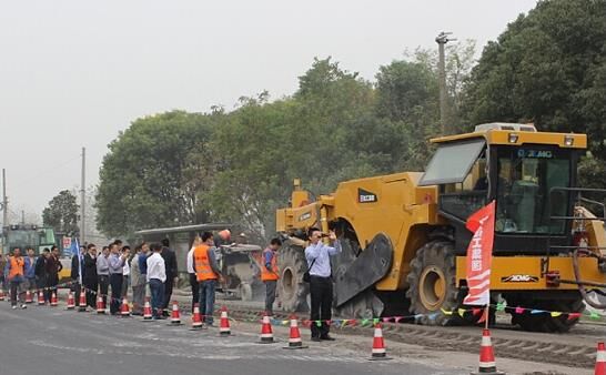參會嘉賓、客戶參觀了臨邑316省道改造工程橋林段徐工XM200K銑刨機(jī)、徐工XLZ230K、XLZ2103路面冷再生機(jī)的施工現(xiàn)場實(shí)戰(zhàn)演示。一到現(xiàn)場,一組嘉賓們嘉賓興致勃勃的圍住了正在作業(yè)該項(xiàng)目最后幾公里的XM200K銑刨機(jī),只見XM200K銑刨機(jī)行走平穩(wěn),身手矯健,銑出的填料坑邊側(cè)及底部整齊、深度均勻,齒狀幾何表面筆直平整,從事多年養(yǎng)護(hù)施工的嘉賓們發(fā)出了“漬漬”的稱贊聲;另一組嘉賓則在XLZ230K、XLZ2103路面冷再生機(jī)的施工段過飽了眼福,只見XLZ230K路面冷再生機(jī)力大無窮、功能全面,銑刨、破碎、加料、灑水、拌合、攤鋪和預(yù)壓一次完成,現(xiàn)場測量結(jié)果顯示銑刨深度大于450mm,超出客戶的預(yù)期,徐工XLZ230K路面冷再生機(jī)獲得了在場用戶的一致好評。