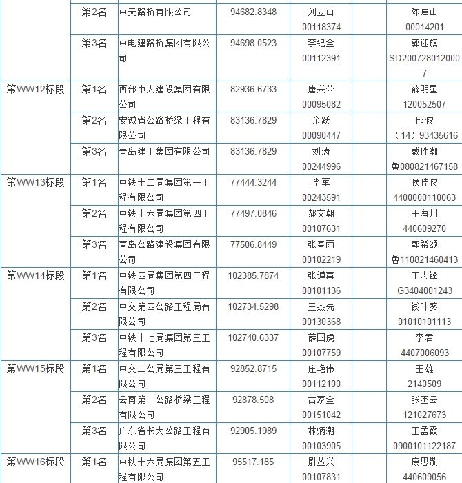 【動(dòng)態(tài)】渭源至武都高速公路中標(biāo)單位