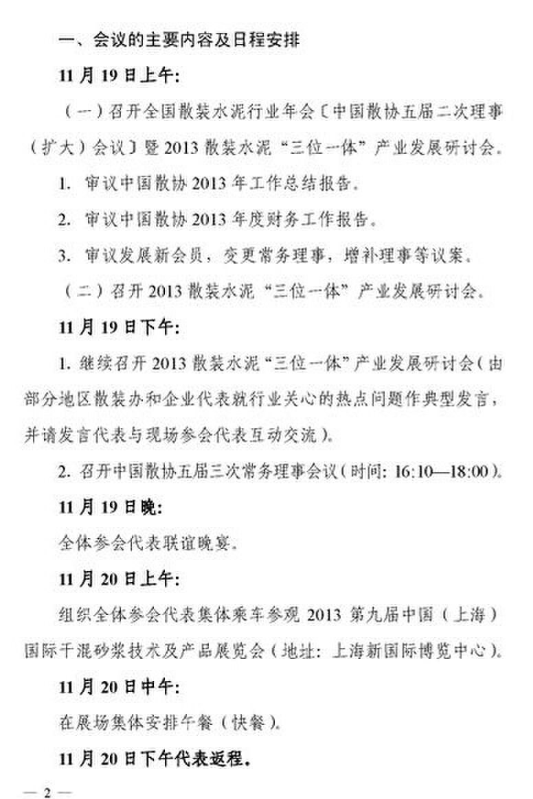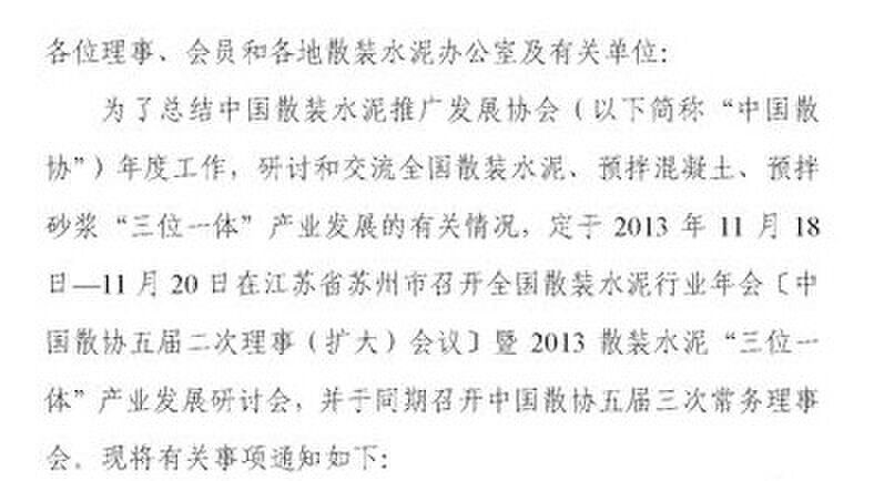 摘要:關于召開全國散裝水泥行業(yè)年會暨2013散裝水泥“三位一體”產業(yè)發(fā)展研討會的通知
