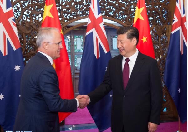 習(xí)近平指出,當(dāng)前,中澳關(guān)系保持積極發(fā)展勢頭,兩國各領(lǐng)域交流合作日益密切。中澳全面戰(zhàn)略伙伴關(guān)系具有強(qiáng)勁活力,雙方要把握兩國關(guān)系發(fā)展正確方向,尊重彼此核心利益和重大關(guān)切,確保中澳關(guān)系持續(xù)健康穩(wěn)定發(fā)展。希望雙方做好中方“一帶一路”倡議同澳方“北部大開發(fā)”計(jì)劃、中國創(chuàng)新驅(qū)動發(fā)展戰(zhàn)略同澳方“國家創(chuàng)新與科學(xué)議程”的對接,實(shí)施好中澳自由貿(mào)易協(xié)定,探討開展更多務(wù)實(shí)合作項(xiàng)目,推進(jìn)司法執(zhí)法、防務(wù)等領(lǐng)域交流合作。