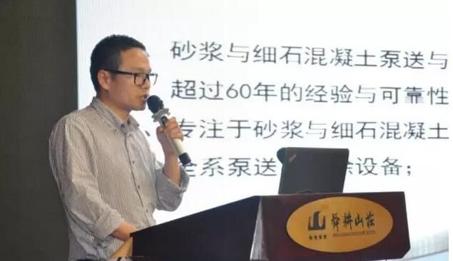 ▼ 南方路機市場總監(jiān)周煒做“未來智能化干混砂漿工廠”的演講;