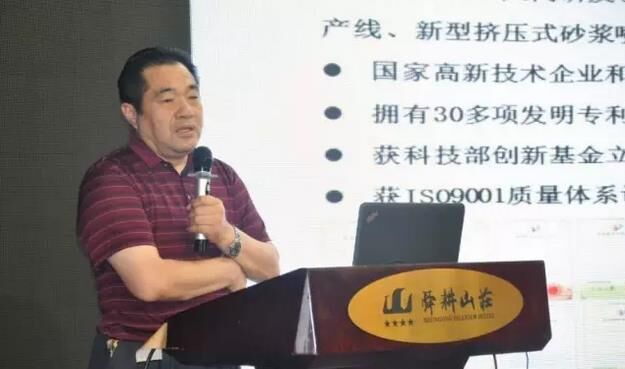 ▼ 山東方達康工業(yè)纖維素有限公司總經(jīng)理馮文利做“預(yù)拌砂漿調(diào)配技術(shù)商榷”的演講;