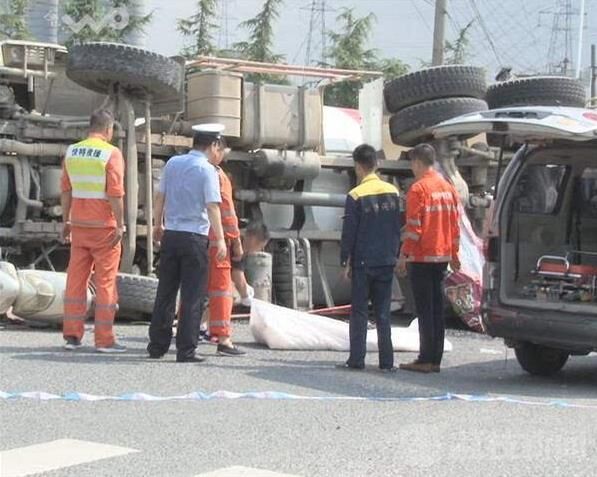 事故發(fā)生之后,南京交警十大隊民警迅速趕到現(xiàn)場,設置路障、保護現(xiàn)場,呼叫救護車過來救助傷者。荔枝新聞通訊員在現(xiàn)場看到,一輛大型水泥攪拌車側(cè)翻在紅綠燈路口中間,車頭頂著一輛踏板電瓶車,騎車的男子被攪拌車壓在底下,已經(jīng)死亡。肇事的水泥攪拌車駕駛員也投案自首。