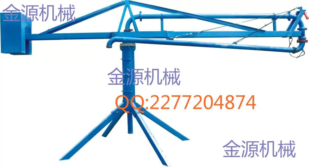結(jié)構(gòu):、插銷、立架、構(gòu)成的底座是固定部分,其上通過(guò)回轉(zhuǎn)支承與上部回轉(zhuǎn)部分相連,上主梁架、平衡臂、平衡臂架拉桿、上橫桿組成后回轉(zhuǎn)部分。立管上有回轉(zhuǎn)卡篐接頭。通過(guò)人力拉動(dòng),可使整個(gè)回轉(zhuǎn)部分回轉(zhuǎn)360度。上梁主架前端連接有一個(gè)回轉(zhuǎn)支座與前橫桿、前拉桿組成前回轉(zhuǎn)部分,在人力拉動(dòng)下可繞回轉(zhuǎn)支座旋轉(zhuǎn)300度。由兩部分回轉(zhuǎn)架組成的合成運(yùn)動(dòng)就能覆蓋所有布料半徑范圍的布料點(diǎn)。