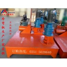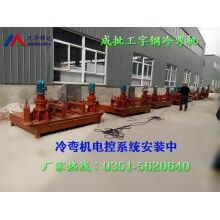 將工字鋼放在冷彎機上,與減速帶動的滾輪接觸后,將壓緊手柄進給鎖緊,啟動電機油泵組,由電動油泵輸出的高壓溢流閥(可調(diào)整所有壓力),進入集成塊到電纜閥,有電液閥和動點開關(guān)(點進,點退)控制油缸工作,工作油缸推進,將工字鋼與三個支撐游輪壓緊并為發(fā)生彎曲變形是時開始計算,油缸推進的長度進程為10mm-15mm,開主電機帶動工字鋼工作,反復(fù)操作,達到所需為止。