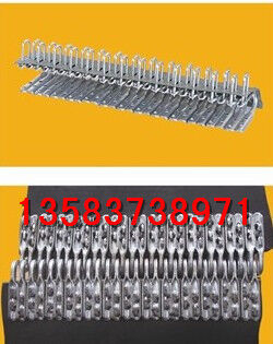 雙排扣結(jié)構(gòu):對輸送帶寬度的適應(yīng)性強(qiáng),接頭成槽性好;訂扣輕便:使用拉桿式訂扣機(jī)裝訂,勞動強(qiáng)度低,工效高,一次裝訂成功率高;接頭強(qiáng)度高:交錯式扣釘布置,扣釘相對密度小,強(qiáng)度高。裝訂后扣釘埋入扣體,耐磨性好,使用壽命長。