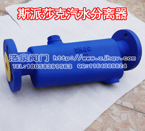 大量含水的蒸汽進入汽水分離器,并在其中以離心向下傾斜式運動。夾帶的水份由于速度的降低而被分離出來。被分離出來的液體流入下部經(jīng)疏水閥排出體外,干燥清潔的蒸汽從分離器出口排出。