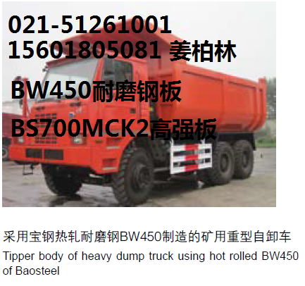 寶鋼利用自身裝備水平和技術力量,在國內率先研制成功高性能薄規(guī)格BW系列熱軋耐磨鋼,厚度范圍為2-12mm,主要特征是采用熱軋板作為基板進行熱處理,規(guī)格薄,板形好,具有高耐磨、高韌性、抗沖擊、易焊接、易成形等特點,品性能和質量穩(wěn)定。本系列產(chǎn)品適用于重型卡車自卸車、垃圾收集車、混凝土攪拌車、工業(yè)風扇、料斗、碎料機、煤礦機械、糧食機械、抓斗等。