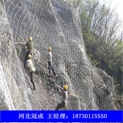 護坡網(wǎng)作用原理上類似于噴錨和土釘墻等面層護坡體系,但因其柔性特征能使護坡網(wǎng)系統(tǒng)將局部集中荷載向四周均材質:鋼絲繩網(wǎng)、普通鋼絲格柵(常稱鐵絲格柵)和TECCO 高強度鋼絲格柵 勻傳遞以充分發(fā)揮整個護坡網(wǎng)的防護能力,即局部受載,整體作用,從而使護坡網(wǎng)系統(tǒng)能承受較大的荷載并降低單根錨桿的錨固力要求 。