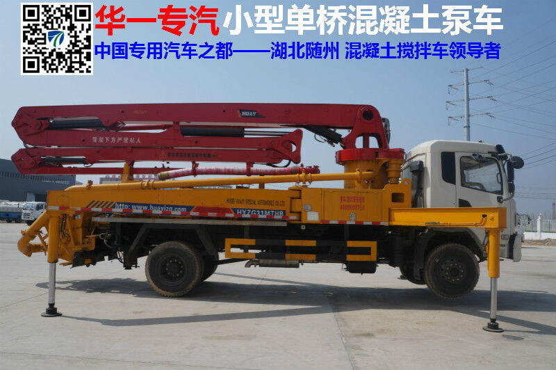 湖北華一專用汽車有限公司生產(chǎn)的小型泵車是國內(nèi)首創(chuàng)小型混凝土臂架泵車,是目前國內(nèi)體積小、一車兩用(高壓車載泵送、低壓泵送臂架布料)最具創(chuàng)意和經(jīng)濟(jì)效益的臂架泵車,以機(jī)械化作業(yè),代替勞動力(能替代40多個勞動力),填充農(nóng)、鄉(xiāng)、城、鎮(zhèn)建筑混凝土輸送的空白,適用于國家政策城鄉(xiāng)一體化建設(shè)不可缺少的專用車輛、具有靈活、方便、高效、經(jīng)濟(jì)、智能的優(yōu)點(diǎn),小型混凝土臂架泵車在湖北具有代表性。