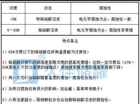硫酸腐蝕的特點