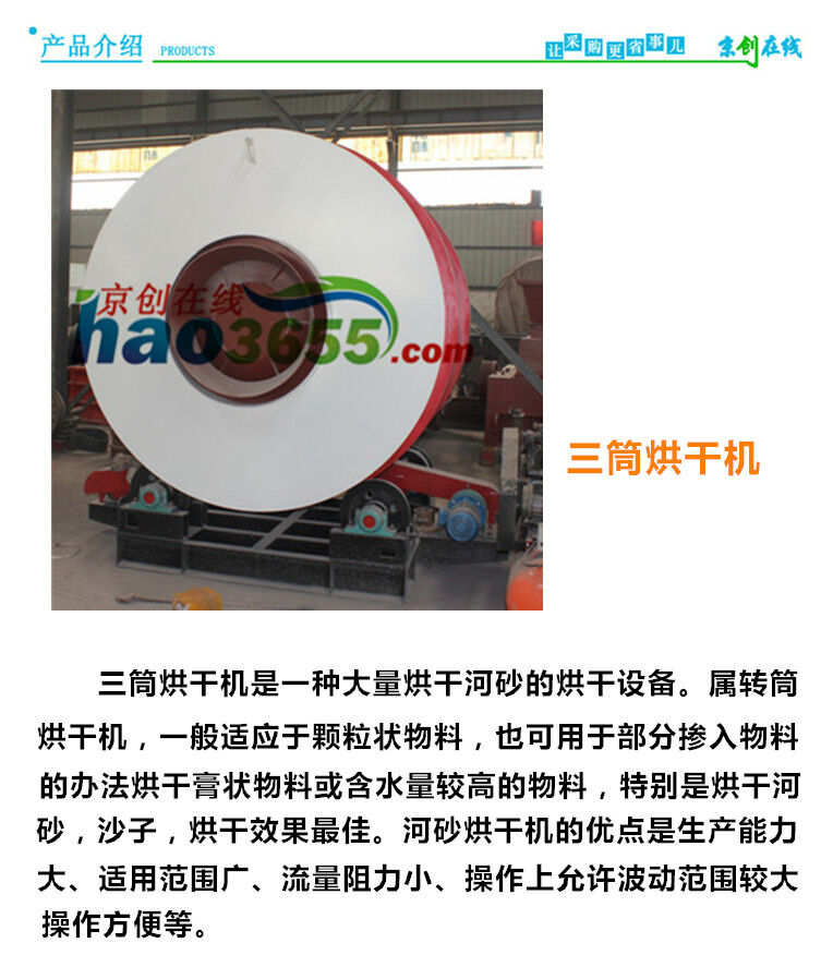 YHS6210三筒烘干機(jī)YHS6210在濕物料烘干設(shè)備系列產(chǎn)品中,回轉(zhuǎn)式三筒烘干機(jī)是在單筒回轉(zhuǎn)式烘干機(jī)基礎(chǔ)上改進(jìn)的高效節(jié)能產(chǎn)品。經(jīng)多家企業(yè)、多個(gè)行業(yè)的應(yīng)用,取得了良好的效果?;剞D(zhuǎn)式三筒烘干機(jī)改進(jìn)了單筒原單筒烘干機(jī)內(nèi)部結(jié)構(gòu),增加入機(jī)前濕料的予烘干和延長(zhǎng)濕料在機(jī)內(nèi)烘干時(shí)間,再加上密封、保濕以及合理的配套措施,使烘干機(jī)生產(chǎn)能力與原單筒式烘干機(jī)相比,提高50-80%,單位容積蒸發(fā)強(qiáng)度可達(dá)120-180kg/m3,標(biāo)準(zhǔn)煤耗僅為6-8kg/t。其技術(shù)先進(jìn)、運(yùn)行參數(shù)合理,操作簡(jiǎn)單可行?!翱坪銠C(jī)械”制造的三筒烘干機(jī)筒體體內(nèi)根據(jù)用戶需求不同,內(nèi)部可以設(shè)計(jì)配備使用耐高溫材料隔溫,在進(jìn)料端為防止倒料設(shè)有門圈及螺旋抄板。具有結(jié)構(gòu)合理,制作精良,產(chǎn)量高,能耗低,運(yùn)轉(zhuǎn)方便等優(yōu)點(diǎn)。另外我公司的研發(fā)部門經(jīng)過多年的不懈努力,可將鍋爐尾氣做為三筒烘干機(jī)的供熱熱源,成功推出利用鍋爐廢氣烘干機(jī)。是供熱無(wú)投資,用熱無(wú)成本。真節(jié)能干燥,真正節(jié)能環(huán)保??捎糜?/span>廣泛應(yīng)用于各個(gè)行業(yè)的礦渣、粘土、煤、鐵粉、礦粉及其它混合材,建筑業(yè)的干混砂漿,黃砂等以及化工、鑄造等行業(yè)原材料烘干。