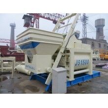JS1500型雙螺旋帶混凝土攪拌機(jī)是由上料、攪拌、卸料、供水、電氣等部分組成。