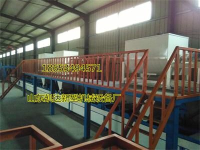 6、FS保溫復(fù)合一體板設(shè)備:由開(kāi)槽機(jī)、履帶輸送機(jī)、網(wǎng)格布布料器、壓實(shí)器、整形器、送板機(jī)、模架等組成。